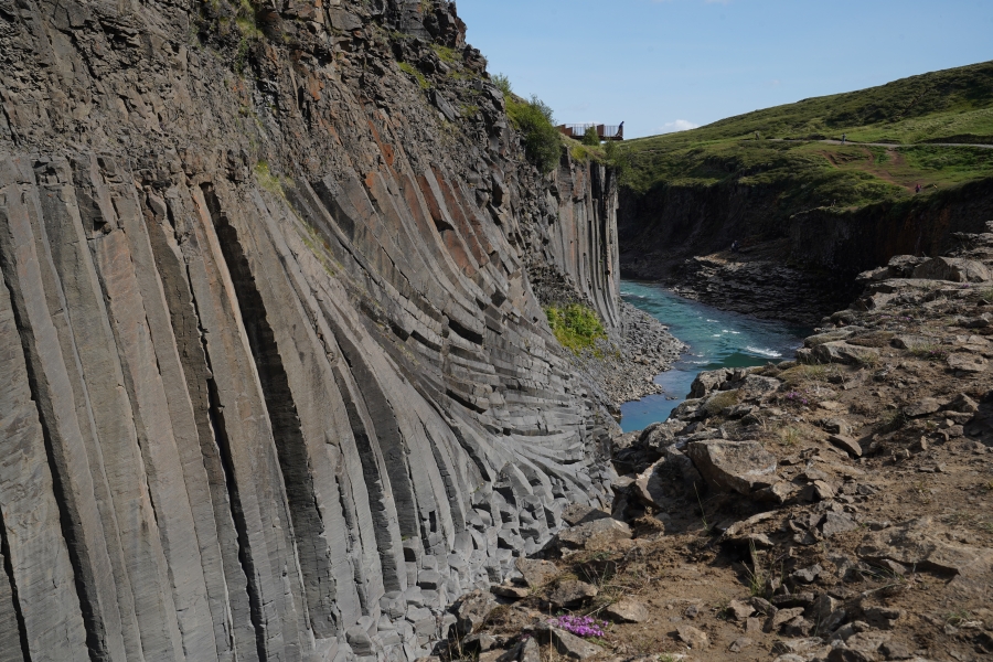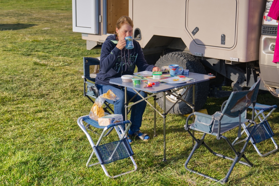 Die nächsten Tage werden von weiteren Höhepunkten geprägt, der eindrucksvolle Basalt-Canyou und der riesige Wasserfall Dettifoss begeistern uns ebenso wie das sonnige Wetter! An unserem ersten Morgen frühstücken wir sogar draußen, das verspricht doch ein schöner Sommer hier zu werden! In den nächsten Tag weht uns bereits ein kräftiger Wind um die Ohren. Ok, das mit dem Sommer ist hier wohl nicht so wörtlich zu nehmen! Im Gebiet um den Mývatn blubbert und qualmt es aus allen möglichen Löchern. Die Vulkanaktivität ist überall zu sehen. Schon hat uns das Land in seinen Bann gezogen!
