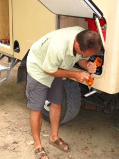 Klaus baut uns mal eben einen Aussentisch für unseren Expedi ...