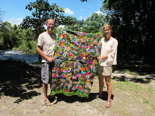 Aber am liebsten schlendere ich über den Artesania-Markt - den Kunsthandwerksmarkt, wo die Indígenas ihre Handarbeiten anbieten - bestickte Wandbehänge, Deckchen und Blusen und viele andere ausgesprochen hübsche Dinge werden zum Kauf angeboten. Und das zu Preisen, wo es mir schon peinlich ist, überhaupt noch zu handeln. Dies gilt auch für den allgemeinen Mercado - wo Obst, Gemüse, Fleisch - lebend oder bereits geschlachtet - angeboten wird. Hier kaufen wir unsere frischen Sachen für einen Spottpreis ein, drängeln uns an Frauen vorbei, die die lebenden Hühner an den Füßen hoch halten, sehen uns Aug in Aug gegenüber mit einer toten Kuh bzw. deren Kopf, der beim Nachbarstand auf dem Tisch liegt. Es herrscht dichtes Gedränge auf dem riesigen Markt.