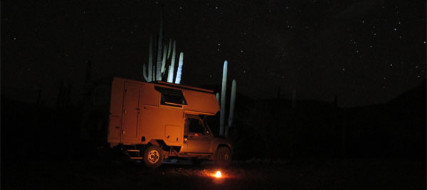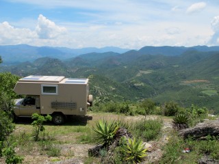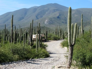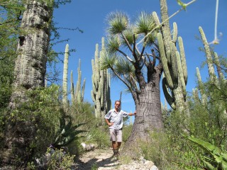 Ein bisschen Stadtluft schnuppern wir in Oaxaca, besuchen dort die größte Zapotekenfestung Monte Albán (Wir hatten aber nun wirklich lange keine Ruinen mehr!) und düsen weiter Richtung Puebla. Die Straße schlängelt sich entlang karger Berge mit hunderten und tausenden Kakteen, eigentlich eine fantastische Strecke. Wir sind jedoch nervös, es ist bereits nach 6 Uhr und wir haben keine Ahnung, wo wir die Nacht verbringen sollen. Da taucht plötzlich ein Schild auf: Jardin Botánico "Helia Bravo Hollis" mit einem kleinen Zeichen für Camping. Wir biegen ab und befinden uns inmitten von tausenden Saguaros und anderen Kakteen. Unser Stellplatz ist so romantisch, wir sitzen noch lange vor unserem Expedi draussen in dieser Kakteenwelt unter einem prächtigen Sternenhimmel...
