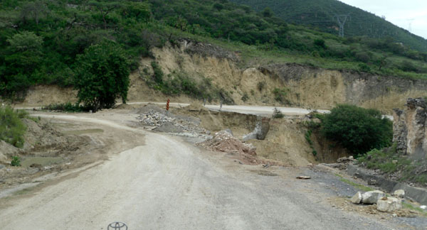 Unterwegs ist Vorsicht angebracht - abgestürzte Straße!