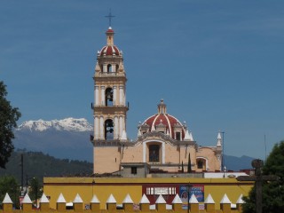 Vulkan La Malinche - unsere nächstes Herausforderung - mit Kirche im Vordergrund