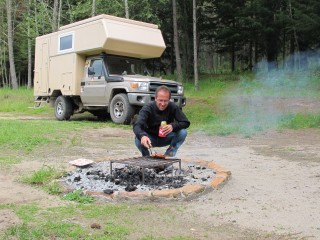 Würstchen überm Holzkohlefeuer