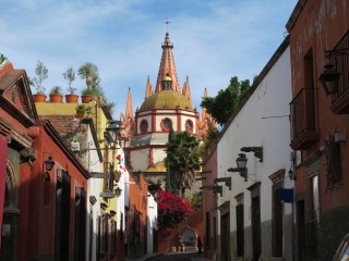 In San Miguel de Allende treffen wir endlich mal wieder andere Reisende. Die Stadt lädt zum Verweilen ein, so bleiben auch wir eine Woche hängen. Das ist natürlich nichts im Vergleich zu Joachim und Bärbel aus dem Schwabenland, die hier bereits seit 2,5 Jahren sind oder Doris und Günther aus der Schweiz, denen es seit April so gut gefällt. Die Stadt bietet aber auch eine Unmenge an Möglichkeiten zum Freizeitvertreib, zum Besichtigen, zum Bummeln oder zum nett Essen gehen. Das Klima ist hier - auf 1900 m Höhe - wunderbar, wenngleich es in der Nacht bereits recht kühl wird. Aber tagsüber lacht die Sonne, was will man mehr? Hier haben sich viele US-Amerikaner niedergelassen, man spricht englisch, viele Künstler sind dort anzutreffen. Die Stadt versprüht ein wunderbares Flair - ja, ich kann gut verstehen, dass man dem Charme dieser Stadt verfällt: