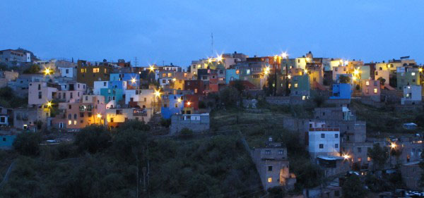 Ausblick am Abend auf Guanajuato von unserem Expedi