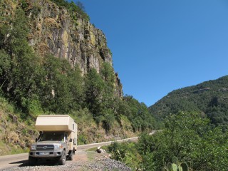 Am nächsten Tag fahren wir auf kurvenreicher Strecke entlang des "Rückgrats des Teufels" durch eindrucksvolle Felsformationen mit fantastischen Panoramaausblicken. Ein schöner (vorläufiger) Abschied aus dem zentralen Hochland von Mexiko!