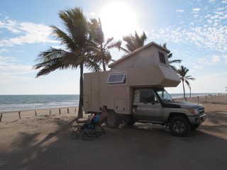 Schon auf der Fahrt hierher sind wir für einige Tage in Celestino hängen geblieben. Wir stehen "prime site" direkt am Pazifik, beobachten Delfine, die vergnügt über die Wellen springen, schauen den Pelikanen beim Fischen zu und abends genießen wir - hier an der Westküste - romantische Sonnenuntergänge. Im 100-Seelen "Fischerdorf" nebenan, wo die Menschen vom Fischfang leben, kann man fast alles kaufen, nur leider keinen Fisch. Ach ja, auch kein Fleisch, dafür aber Huhn! Auch gut - gibt es eben Huhn zum Abendessen.