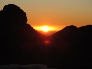 Direkt nach dem Aufwachen springe ich aus dem Bett (ok - ich klettere langsam raus), was eigentlich so gar nicht meine Art ist. Normalerweise brauche ich meine Zeit, um wach zu werden, während sich Klaus seinen ersten Kaffee macht und diesen gemütlich im Bett zu sich nimmt. Aber hier tappse ich schlaftrunken auf die Veranda, wo mein Göttergatte bereits mit frischem Kaffee wartet und wir genießen gemeinsam den Sonnenaufgang. Ein traumhafter Anblick ist die Belohnung für das frühe Aufstehen. Für eine Woche haben wir unseren Expedi gegen die Luxusvilla von Matt und Mayra getauscht, die sie uns zur Verfügung stellen. Welch ein Leben - wir verbringen fast die ganze Woche auf der Terasse sitzend, wo wir stundenlang in die herrlich gelegene, geschützte Bucht schauen mit den Bergen im Hintergrund. Dahinter hört man die Wellen des Pazifiks gegen die Klippen schlagen. Ach ja - ars vivendi einmal anders. Wir sind in San Carlos, ein Ort, wo sich viele Amerikaner niedergelassen haben.