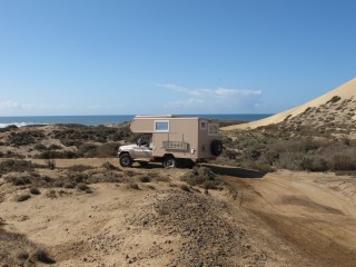 Lohn der ganzen Mühe: einsamer romantischer Übernachtungsplatz in den Sanddünen am Meer