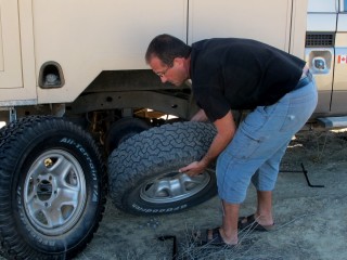Reifenwechsel und Flicken am Wegesrand!