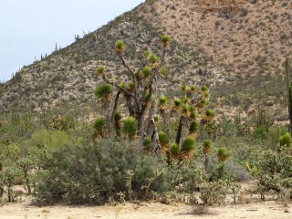 Aber hier haben wir viele Gelegenheiten, diese zu verbessern. Wir biegen immer mal wieder von der sehr guten Hauptstraße Mex 1, die sich von Nord bis Süd 1.700 km durch die komplette Baja zieht, ab und sind gleich inmitten des tollsten Offroad-Paradieses. Wir durchfahren staubtrockene Landschaften und bergige Gegenden, kämpfen uns durch jede Menge Sand, sehen unzählige Kakteen und Joshua Trees am Wegesrand. Wir rumpeln, schaukeln und hüpfen über Strecken, die den Begriff Straße nicht annähernd verdienen, an deren Ende aber immer wieder Siedlungen zu finden sind.