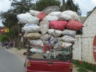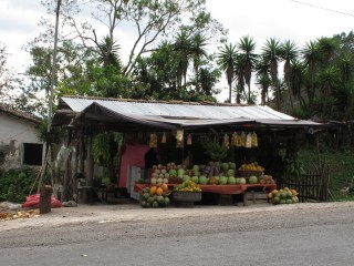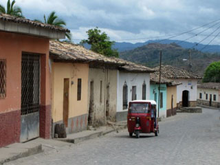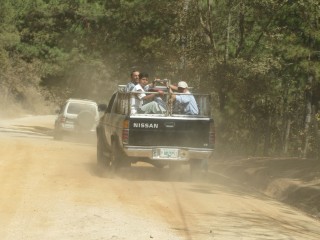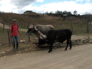 Auf unserer Fahrt Richtung Gracias Lempira fahren wir immer wieder an Kaffeefeldern vorbei. Die Kaffeebohnen liegen überall zum Trocknen aus, hin und wieder sehen wir große Kaffeefabriken, wo die Menschen säckeweise den Kaffee hinschleppen. Neben Bananen gehört er zu den wichtigsten Exportgütern des Landes. Wir beobachten in vielen Gärten einen gemauerten Ofen zum Backen und Kochen. Lehm- und Dachziegeln werden am Straßenrand getrocknet und nach dem Brennen in großen Öfen fein säuberlich daneben aufgestapelt. Abseits der mit tausenden von Schlaglöchern übersäten Hauptverkehrsstraßen begegnen wir immer wieder Ochsengespanne, die Holz oder andere Lasten zu schleppen haben oder bei der Feldarbeit helfen müssen.