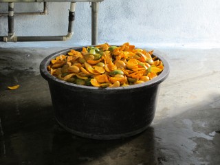 Eine Entschädigung für die schweißtreibende Arbeit bekommen wir auf unserem Übernachtungsplatz. Wir schlagen unser Quartier in unserem Expedi auf der eigenen Finca der Organisation auf. Hier steht Mangobaum neben Mangobaum, Bananenstauden, Papayabäume und Ananaspflanze wachsen im hinteren Teil. Es ist gerade Mangozeit. Täglich essen wir Mangos, kochen mit Mangos, garnieren unsere Salate mit Mangos - Mangos satt. Tagsüber werden in dem kleinen Produktionsgebäude von drei jungen Frauen Fruchtsäfte und -weine, sowie eine himmliche Mangomarmelade hergestellt. Nachts hören wir das Plumpsen der reifen Füchte, die vom Baum fallen. Herrlich süß und lecker - ein wahres Paradies für Mangoliebhaber!