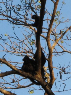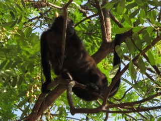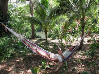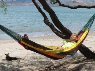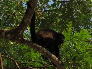 Die Affen tanzen uns - im wahrsten Sinne des Wortes - willkürlich auf der Nase herum. Na ja, nicht ganz auf der Nase, aber direkt über unseren Köpfen schwingen sich geschwind die Klammeraffen von Ast zu Ast, von Baum zu Baum. Dazwischen hangelt sich träge eine Horde Brüllaffen weiter. Am frühen Morgen liege ich im Bett, als gleich über unserer geöffneten Dachluke der Leitaffe zum Gebrüll ansetzt. Erst grummelt er vor sich hin, bis er mit seinem lauten Gebrüll sein Revier markiert. Schlaftrunken drehe ich mich um und ignoriere den "Lärm" über mir. Wir sind mal wieder in einem Paradies gelandet. Nach der nervenaufreibenden Grenzabfertigung zwischen Nicaragua und Costa Rica rumpeln wir auf die Finca von Agi und Guido. Ein schweizer Ehepaar, das dort seit 15 Jahren eine riesige Finca besitzt, Ferienhäuschen vermietet und ganz offensichtlich ein großes Herz für Traveller wie wir hat. Wie groß die Finca ist, lernen wir am zweiten Tag kennen, als wir drei Stunden auf dem hauseigenen Wanderweg durch ihr Gelände streifen. Träge schaukeln wir die nächsten fünf Tage in der Hängematte und genießen, dass wir in Costa Rica - dem Urlaubs-Eldorado - sind.