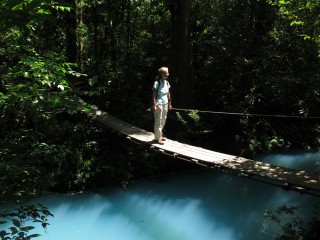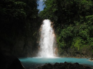 Ein ganz besonderes Highlight finden wir im Nationalpark Tenorio am Rio Celeste. Ungewöhnlich babyblau fließt dieser durch den dichten Regenwald. Die ungewöhnliche Färbung hat ihren Ursprung in einer chemischen Reaktion, die durch Vulkanaktivitäten herrührt. Die Wanderschuhe und -hosen voller Matsch, aber der Fluß und der reißende Wasserfall entschädigt für alles.