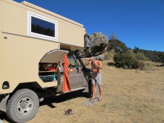 Im dichtesten Nebel schieben wir uns mal wieder in die Höhe. Auf 3.000 Meter erreichen wir unser Ziel, den El Chico Nationalpark mit dazugehörendem Campingplatz. Es ist so nebelig, dass wir nichts erkennen können und froh sind, als wir unseren Expedi irgendwo abstellen können und eine eiskalte Nacht hereinbricht. Am nächsten Morgen lacht uns die Sonne an und wir sehen nun, in welchem Kleinod wir mal wieder gelandet sind. Wir befinden uns in einem riesengroßen Campingplatz mit wunderbaren Stellplätzen. Ja, das lässt man sich gefallen. Die Wanderschuhe werden geschnürt, dafür haben wir extra den beschwerlichen Weg auf uns genommen. Letztendlich bleiben wir 4 Nächte dort, kramen unser Winterbett wieder hervor, dass wir erst 2 Tage zuvor in die Sitztruhe geräumt hatten und können aber tagsüber bei warmen Temperaturen und Sonnenschein den Nationalpark erkunden. (wie man oben auf dem Header-Foto schön erkennen kann!)