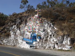 Die Straße wird schlechter und schlechter, ein riesengroßes Schlagloch folgt auf dem nächsten. Zwischendurch muss Klaus (er fährt gerade) immer wieder auf die Topes achten. Dabei handelt es sich um mörderische Bodenwellen, die immer in Ortschaften quer über die Straße laufen. Diese schneller als mit 10 km/h zu nehmen, bedeutet - man kann sein Auto in allen Einzelteilen aufsammeln und in unserem Fall zusätzlich den Schrankinhalt neu sortieren. Einmal überholt er einen LKW und verfällt danach in einen gefährlichen Schlingerkurs, um den Schlaglöchern auszuweichen. Uff, da stockt einem schon mal kurz der Atem.