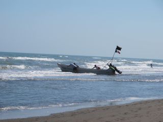 Damit es nicht zu streßig auf unserer Weiterfahrt wird, entscheiden wir uns für eine Woche Strandurlaub an der Costa Esmeralda :-) Schließlich sind wir auf Meereshöhe angekommen, was sich erfreulicherweise sofort an den sommerlichen Temperaturen bemerkbar macht. Durch die Wirtschaftskrise in den USA und die Angst der Amis vor Überfällen und den Drogenkriegen an der mexikanisch/amerikanischen Grenze ist alles wie ausgestorben. Es gibt hier viele Campingplätze, aber keine Gäste. Früher war Mexiko ein beliebter Ort für die älteren Amis mit ihren riesigen Wohnmobilen zum Überwintern. Heute ist alles leer und verlassen. Schade für die Leute hier, die dadurch natürlich auch ihrer Lebensgrundlage beraubt werden.