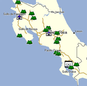 ![]() 15 verschiedene Übernachtungsplätze in Costa Rica (Bildquelle: Garmin BaseCamp) |