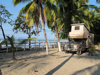 Costa Rica: Montezuma, Am Strand südlich des Ortes (ATT004_COS) N 9.63401 W 85.07394, 0 m 0 Colón/Tag (~ 0,00 Euro) Stellplatz auf einer kleinen Landzunge unter Kokospalmen. Auf der Schotterstraße nach Cabuya links in eine kleine Piste abbiegen, die zu Häusern führt. Komplett an diesen vorbeifahren bis zu dem kleinen Palmenwald. Sehr ruhige Nacht. |