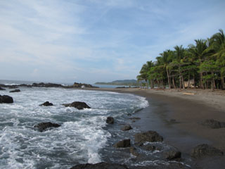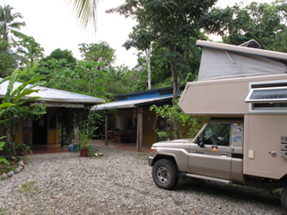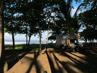 Costa Rica: Dominical, Am Strand (ATT012_COS) N 9.25175 W 83.86456, 0 m 0 Colón/Tag (~ 0,00 Euro) Direkt am Strand, sehr schattig unter Palmen und Bäumen. Starke Polizeifrequenz - wir haben uns stets sicher gefühlt. Toiletten und Duschen können für 500 Colones auf dem daneben liegenden Campingplatz "Los Cocos" genutzt werden (der Campingplatz selber war wegen der teils heftigen Regenfälle und der matschigen Wiese nicht in Betrieb). |