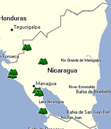 Für den Download aller GPS-Koordinaten (für GARMIN-Navigationsgeräte bzw. die Software MapSource) zu den hier aufgeführten Übernachtungsplätze in Nicaragua hier klicken. Die Namen in der Datei folgen dem Muster "ATT001_NIC", "ATT002_NIC", ... Detailinformation zu den Übernachtungsplätzen finden sich unter dem gleichen Namen in der folgenden Auflistung. Die Beschreibung der Campingplätze ATT001_NIC bis ATT007_NIC bezieht sich auf unseren Reisezeitraum 17. März bis 14. April 2012. |