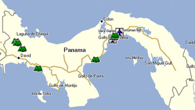 Für den Download aller GPS-Koordinaten (für GARMIN-Navigationsgeräte bzw. die Software MapSource) zu den hier aufgeführten Übernachtungsplätze in Panama hier klicken. Die Namen in der Datei folgen dem Muster "ATT001_PAN", "ATT002_PAN", ... Detailinformation zu den Übernachtungsplätzen finden sich unter dem gleichen Namen in der folgenden Auflistung. Die Beschreibung der Campingplätze ATT001_PAN bis ATT006_PAN und des Hotels ATT007_PAN bezieht sich auf unseren Reisezeitraum 11. Juni bis 23. Juni 2012. |