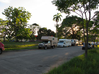EINER UNSERER FAVORITEN ! Panama: Santa Clara, XS Trailerpark (ATT005_PAN) N 8.38847 W 80.11096, 57 m 15 US$/Tag (~ 12,00 Euro) (ursprünglich 20 US$/Tag, doch bei mehreren Tagen verhandelbar) Trailerpark unter amerikanischer Führung. Strom/Wasser/Abwasser am Stellplatz. Sehr gepflegte Anlage mit Motel. Tolle Sportsbar mit attraktivem Preis/Leistungsverhältnis. Pool, Gemeinschaftspalapa. Free WIFI. Saubere Toiletten, leider nur Außendusche. Gute Basis, um sein Auto für die Verschiffung nach Kolumbien klar zu machen. |