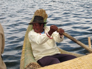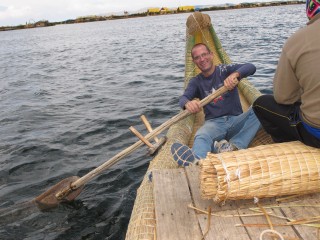 Kurz bevor wir Peru verlassen, schippern wir mit einem Schilfboot über den 3.800 Meter hoch gelegenen Titicaca-See. Wir besuchen die schwimmenden Inseln der Uro-Nachfahren. Die Inseln sind aus Schilf gebaut, auf ihnen stehen Schilfhütten. Heute leben die Menschen dort nur noch für die Touristen wie in einem riesigen Freilichtmuseum. Trotzdem ist es ein lohnender Ausflug und wir haben viel Spaß mit den Familien der Insel, die wir besuchen.