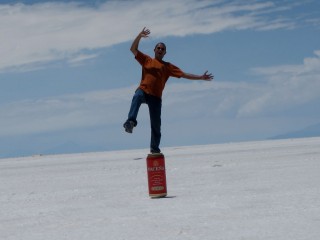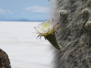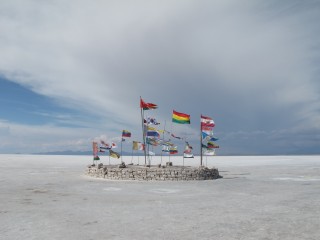 Der Salar de Uyuni ist ein riesiger Salzsee, der größte der Welt. Die Augen werden geblendet von der kilometerweiten weißen Fläche, man hat das Gefühl, auf einem gefrorenen See zu stehen. Aber es ist alles Salz, soweit das Auge reicht.