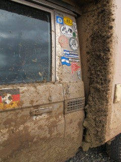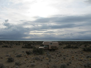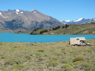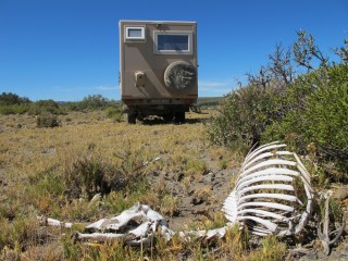 Wir beschließen, die Carretera Austral früher zu verlassen, solange sie noch asphaltiert ist. Also überqueren wir einen winzigen Grenzübergang am Lago General Carrera zurück nach Argentinien, nur um gleich hinter dem Pass für die nächsten 100 Kilometer über eine schlimme Wellblechpiste zu rumpeln. Irgendwann fällt der linke Aussenspiegel einfach ab und kurz darauf macht der Expedi keinen Mucks mehr. Er hat wohl auch zuviel von diesen Strecken. Klaus - Mitte 2010 noch als Mechaniker-Greenhorn auf unsere Abenteuertour gestartet - überlegt nur kurz, holt seinen Werkzeugkasten hervor und binnen kürzester Zeit rumpeln wir weiter.