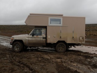 Aber unser Leiden ist noch nicht zu Ende. Nach einem Ausflug in den herrlichen Nationalpark Francisco Perito Moreno schlägt das Wetter um und es regnet. Auf der Rückfahrt rutschen wir durch tiefen Schlamm bis wir quer stehen und uns fest fahren. In strömendem Regen kommen wir nur mit Hilfe der Sandbleche wieder frei. Am nächsten Tag geht die Schlammschlacht weiter - diesmal auf der Ruta 40 - einer Hauptverbindungsstraße von Nord nach Süd! Mir ist das Lachen schon lange vergangen, diese Fahrerei macht keinen Spaß mehr.