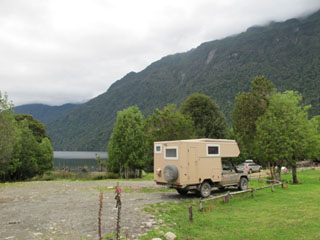 Und dann queren wir auch schon wieder die Grenze nach Chile. Das Gegenstück der Ruta 40 auf chilenischer Seite - die Carretera Austral - wartet. Und auf unserer Straßenkarte ist es deutlich zu erkennen: dieses Teilstück ist asphaltiert! Davon bringen mich weder die Geschichten anderer Reisende noch der Hinweis in unserem Reiseführer ab, die Karte zeigt es rot - asfaltado! Kaum sind wir über die Grenze gefahren, knallt unser Expedi durch die unzähligen Schlaglöcher. "Wir sind ja noch auf der Zufahrtsstraße zur Carretera Austral", erkläre ich Klaus. Er schweigt. Dann erreichen wir sie - und Klaus traut sich nicht, zu mir hinüberzuschauen. Der Zustand ist katastrophal, die Straße ist übersät mit Schlaglöchern, es ist unmöglich, ihnen auszweichen. Ich leide, das Auto leidet und Klaus macht gute Miene zum bösen Spiel. "Aber die Strecke ist sehr schön", erklärt er mir immer wieder. Ja, es geht vorbei an Fjordlandschaften, an vielen Seen, im Hintergrund ragen die schneebedeckten Berge auf, ein Gletscher liegt am Wegesrand, aber ich kann die Schönheit der Landschaft nicht genießen. Und dann - endlich - all meine Gebete wurden erhört - beginnt für die nächsten dreihundert Kilometer der Asphalt!