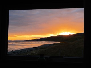 Übernachtungsplatz am Meer mit Sonnenuntergang ...