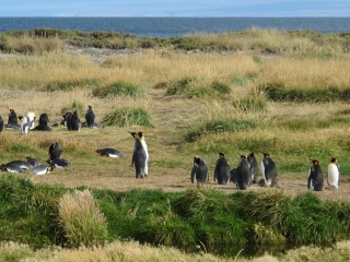 Wir setzen zum Endspurt an. Mal wieder in Chile angekommen, besichtigen wir in Punta Arenas die schönste Stadt Patagoniens. Direkt an der Magellanstraße - die von Fernando Magellan 1520 n. Chr. entdeckte Ost-West-Passage, die bis zur Eröffnung des Panamakanals die Hauptroute für die Handelsschiffe darstellte - gelegen, entwickelte sie sich zu einer wichtigen Hafenstadt. Die Besitzer der riesigen Schafs-Estanzias brachten weiteren Reichtum in die Stadt. Viele prachtvolle Bauten sowie der herrschaftliche Friedhof sind Zeugen einer glanzvollen Vergangenheit. So schlendern wir gemütlich durch den sehenswerten Ort, bevor wir mit unserem Expedi auf die Fähre Richtung Feuerland rollen. Die Delfine heißen uns nach der ruhigen Überfahrt willkommen, übermütig springen sie neben dem Schiff aus dem Wasser. An Land besuchen wir eine Kolonie Königspinguine. Nur hier im Süden - kurz vor und in der Antarktis - finden sie ihren Lebensraum.