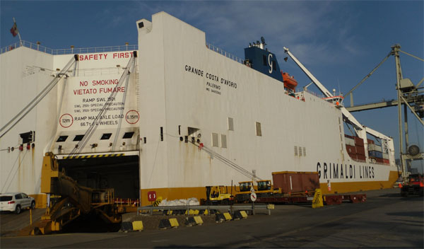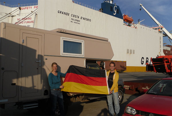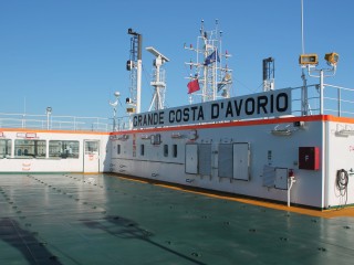 Das Frachtschiff Grande Costa D'Avorio bringt uns zurück nach Deutschland