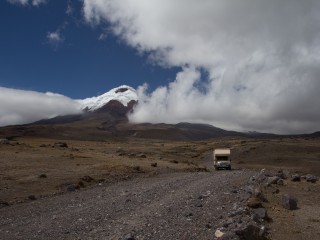 Wir steuern den wunderschönen Campingplatz des Nationalparks am Fuße des Cotopaxi an. Es regnet in Strömen, wir sitzen im Expedi. Doch plötzlich reißt die Wolkendecke auf und gibt den Blick frei auf den schneebedeckten Vulkan, der majestätisch in den inzwischen strahlend blauen Himmel ragt. In der Ferne erhebt sich der Chimborazo über die Wolken, mit 6.310 Meter der höchste Vulkan. Was für ein erhabenes Gefühl, diesen Ausblick genießen zu dürfen!