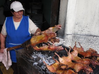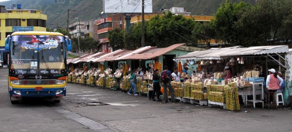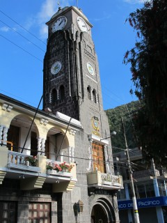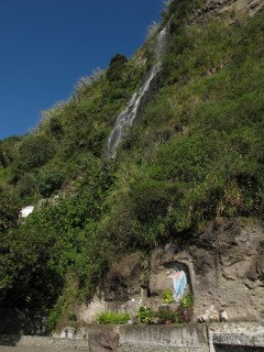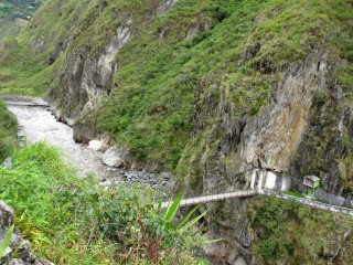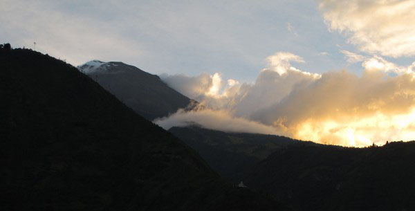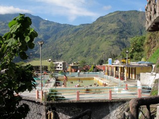 Getreu unserem Motto "Schlecht gehen wird es uns noch früh genug!" tun wir unseren Körpern etwas Gutes und machen "Kur"-Urlaub! Und wo bietet es sich besser an als im 1.800 Meter hoch gelegenen Baños. Der kleine Ort verfügt allein über fünf öffentliche Bäder mit herrlich heißen Quellen. Im Termales de la Virgen liegen wir ein über den anderen Tag im heißen Thermalwasser und genießen den grandiosen Ausblick. Auf der einen Seite schweift der Blick auf die Berge, auf der anderen Seite fällt der Wasserfall "Cascada de la Virgen" fast senkrecht den Berghang hinunter. An diesem Wasserfall gab es eine Marienerscheinung, die dem Ort seinen Namen gab - Baños de Aqua Santa - Baños des heiligen Wassers. So liegen wir also gemütlich im heißen Wasser, von der Jungfrau wohlbehütet und erholen uns von den ausgiebigen Wanderungen, die wir in der Umgebung unternehmen. Gleich nebenan dampft der aktive Vulkan Tungurahua still vor sich hin, immer in dichten Wolken eingehüllt. Nur einmal zeigt er sich uns kurz in der Abenddämmerung. Die Becken werden täglich neu gefüllt, Wasser - auch heißes durch die Vulkanaktivitäten - gibt es hier reichlich.