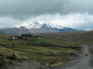 Wieder unterwegs - der Chimborazo kündigt sich von Weitem an