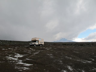 Nachdem wir uns nach neun Tagen wie neugeboren fühlen, greifen wir an. Ecuadors höchster Vulkan - der Chimborazo mit 6.310 Metern - erwartet uns. Bei kaltem Wetter und dichtem Nebel beziehen wir unser Nachtlager am Eingang des Nationalparks - auf fast 4.400 Meter Höhe! Eine entsprechend kalte Nacht erwartet uns. Aber wir werden belohnt. Am nächsten Morgen erreichen wir mit unserem Expedi mit 4.800 Metern wieder einen neuen Höhenrekord, da reißt die Wolkendecke auf und gibt den Blick frei auf den majestätisch vor uns aufragenden Chimborazo. Während wir noch die Wanderschuhe schnüren, hüllt er sich jedoch wieder in dichte Wolken. So erklettern wir auch noch unseren privaten Höhenrekord bis auf 5.100 Meter!