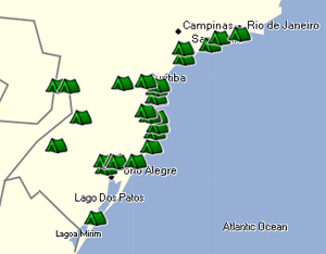 ![]() 28 verschiedene Übernachtungsplätze in Süd-Brasilien (Bildquelle: Garmin BaseCamp) |