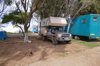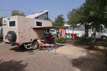 Fährt man mehr ins Landesinnere, werden die riesigen Wohnmobile weniger und man findet gemütliche kleine Campingplätze. Doch eins ist allen Plätzen gemein: Wenn der Ruf des Muezzin fünfmal am Tag ertönt, hört man dies überall. Denn es gibt unzählige Moscheen. Und wenn in direkter Nachbarschaft zum Campingplatz drei Moscheen stehen, so erschallt auch der Ruf von jedem der drei Minarette. Der Tag beginnt sehr früh - momentan ertönt der erste Ruf gegen 5:30 Uhr, selbst um 4 Uhr in der Nacht werden wir zweimal aus dem seligen Schlaf gerissen (was diesen engagierten Muezzin nicht daran hindert, gegen frühen Morgen erneut loszulegen). Je nach Muezzin ist der Ruf mehr oder weniger laut, energisch und elanvoll. Ansonsten bleiben die Nächte sehr ruhig, nur hin und wieder klagt ein Esel lautstark über sein trauriges Leben und am frühen Morgen kräht schüchtern ein Hahn nach dem Morgengebet.