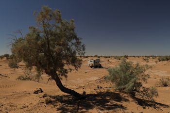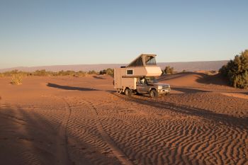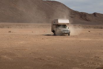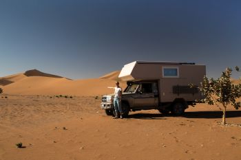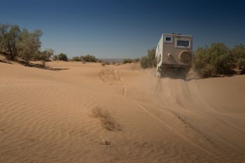 Wie ein Wüstenschiff schaukelt unser Expedi