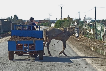 Auf dem Land gibt es viele Esel- und Pferdegespanne