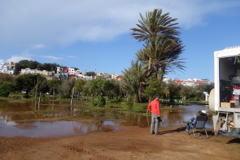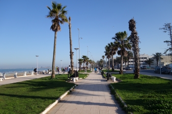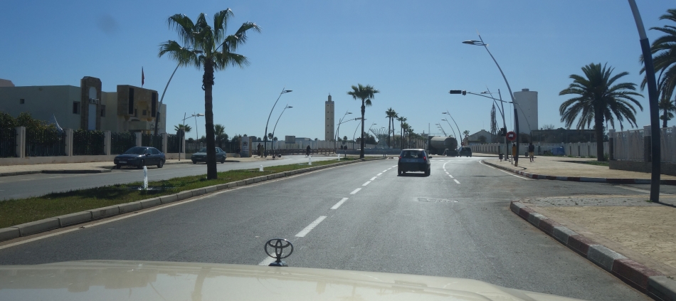 Wir fahren mitten durch Tanger, eine Großstadt. Wieder verblüfft uns Marokko. Der breite herrschaftliche Boulevard Mohammed VI. würde sogar Düsseldorf oder Hamburg alle Ehre machen, auch die Gebäude und übrigen Straßen sind sehr modern. Auf dem Weg zum etwas am Stadtrand gelegenen ersten Campingplatz fahren wir mit staunenden Blicken durch moderne Neubausiedlungen.