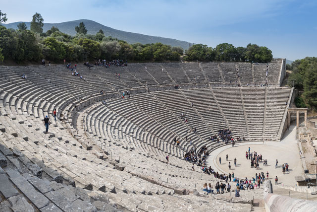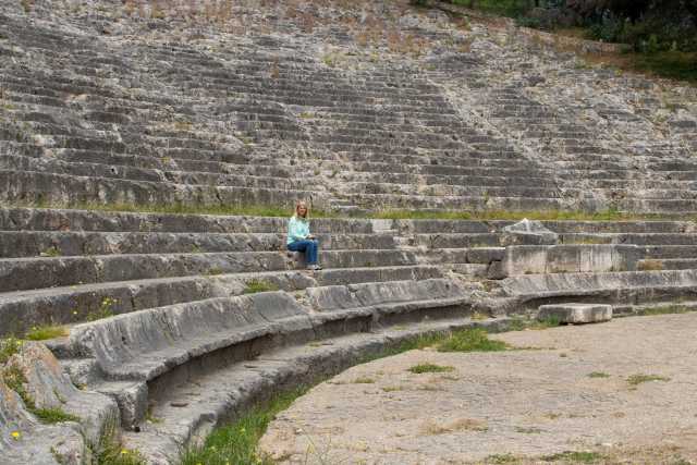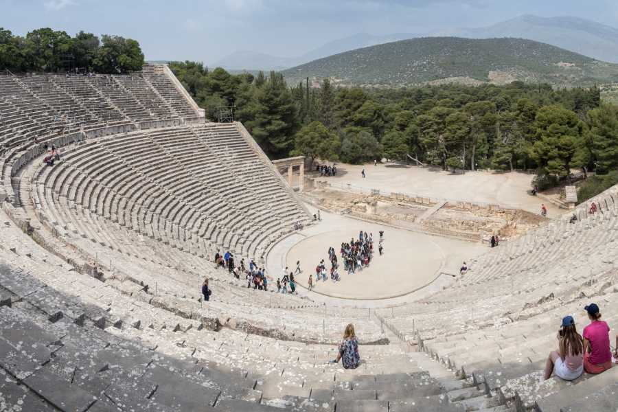 Was für ein Theater! Allerdings ist das antike Theater bei Argos nur ein Vorgeschmack auf das, was wir in Epidauros noch sehen werden. Dieses hier war mit 20.000 Sitzplätzen sogar das größte Theater der Antike, während das viel bekanntere und sehr gut erhaltene in Epidauros "nur" 14.000 Zuschauern Platz bot. Die Akkustik ist auch heute noch hervorragend, was ein Lehrer seinen Schülern während eines Ausfluges in das UNESCO-Welterbe anschaulich demonstriert. Auch die übrigen zahlreichen Besucher lauschen gespannt und der anschließende Applaus hallt durch das riesige Rund. Bemerkenswert, wenn man bedenkt, dass diese Bauwerke bereits um 300 v. Chr. entstanden.