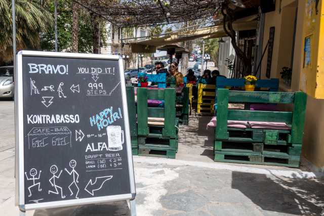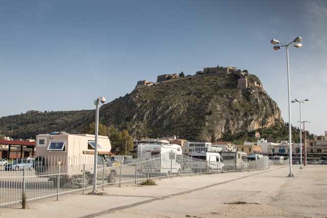 Aber zuerst bleiben wir in Nafplio mal wieder einige Tage hängen. Der hübsche Touristenort bietet Wohnmobilisten eine Übernachtungsmöglichkeit direkt im Stadtzentrum auf dem großen Parkplatz am Hafen, was auch eifrig genutzt wird. So bietet sich die Gelegenheit abends auf ein Glas Wein oder ein Abendessen die wenigen Schritte zu den vielen gemütlichen Tavernen zu schlendern. Eine wunderbare Konstellation, die für jede Seite nur Vorteile bringt. Normalerweise ist das wilde Campen in Griechenland verboten und die meisten Campingplätze sind nicht in Fußnähe zum nächsten Ort. Auch wir bummeln durch die nette Fußgängerzone, kaufen Souvenirs und finden wieder eine dieser wunderbaren Konditoreien mit seinen unwiderstehlichen Köstlichkeiten!