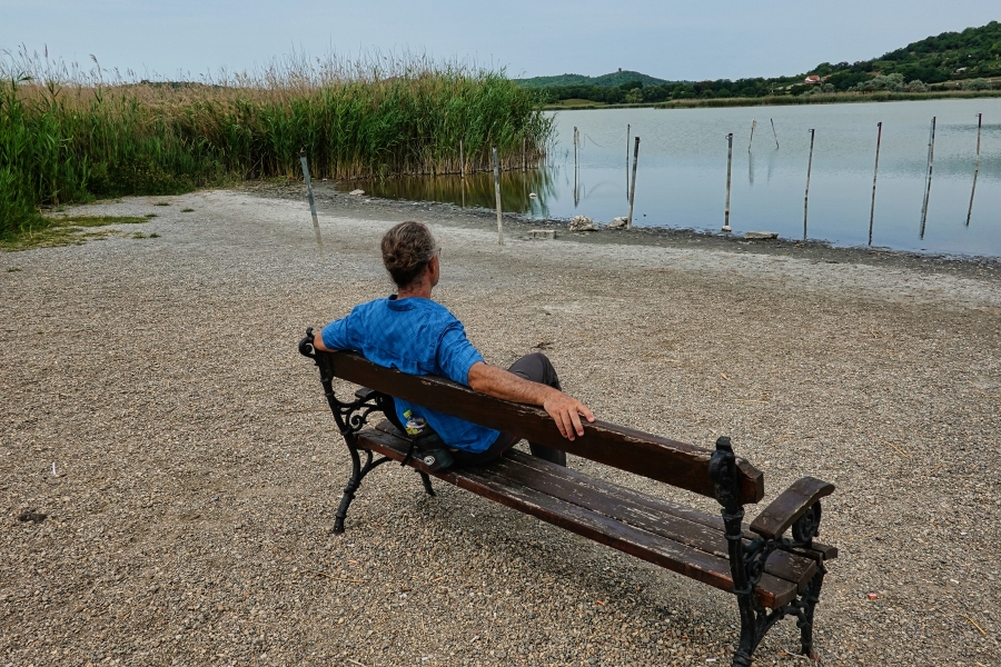 Wenige Tage später spüre ich Wasser der unangenehmen Art an meinem Körper herunterlaufen. Seit unserer Abreise aus Deutschland steigt das Thermometer ständig über die 30°C Marke. Heute sind wir bei 36°C angelangt und wir wandern am Nationalpark Oberer Balaton. Als wir uns gerade fragen, was wir da eigentlich machen, fällt uns ein, es ist Montag und normalerweise müssten wir arbeiten. Viel beschwingter gehen wir weiter, bis mir der Schweiß langsam bis in meine Schuhe tropft. Erneut frage ich mich ganz im Stillen: was tun wir hier eigentlich bei dieser Hitze?