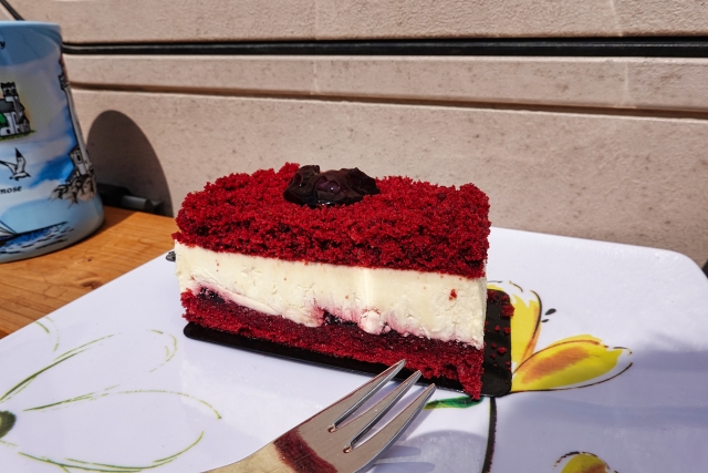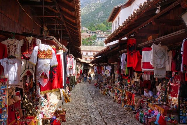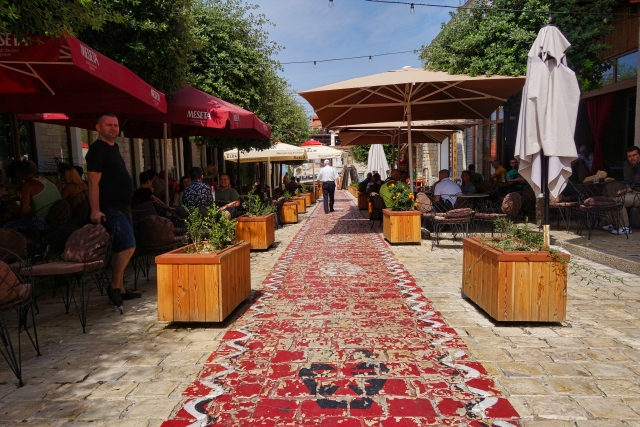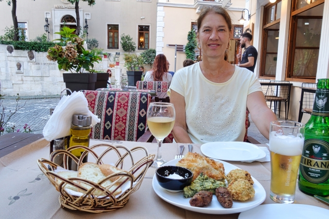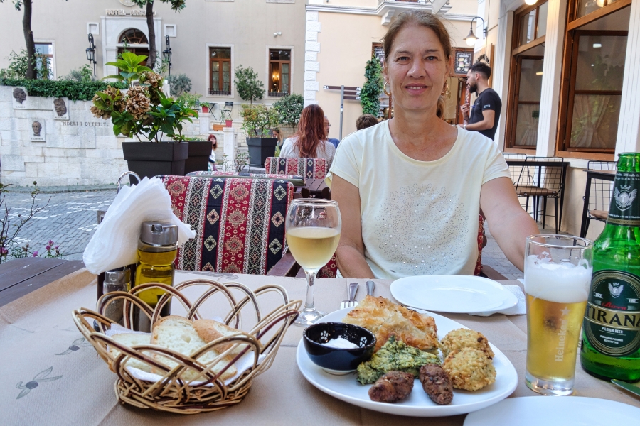 Dann geht es aber weiter! In Kruje zollen wir dem Nationalhelden Skanderbegs unseren Respekt. Er wehrte mehrfach den Angriff der damals übermächtigen Osmanen ab und wird bis heute verehrt. Dort finden wir in der George W. Bush bakery (sorry, es gab keine andere) endlich mal wieder diese mega leckeren und super süßen Kuchenstücke, die wir genußvoll verzehren.