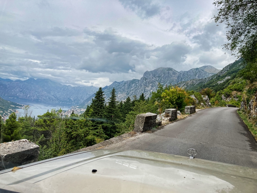 Bei der Fahrt hinauf in den Lovcen Nationalpark ist nicht nur der Blick hinunter auf die Bucht von Kotor atemberaubend, auch bei der engen einspurigen Strecke halte ich immer mal wieder die Luft an und mache mich so klein wie möglich, vielleicht kann sich der Gegenverkehr so besser an uns vorbeiquetschen. Leider haben wir heute Pech mit dem Wetter und es fängt an, in Strömen zu regnen, so dass wir nicht viel von der beeindruckenden Landschaft des Nationalparks haben. Dafür scheint am nächsten Tag wieder die Sonne und die Fahrt um den Fjord, der allerdings kein Fjord ist, sondern nur eine Bucht (man lernt ja ständig etwas dazu), sowie der Besuch der Altstadt von Kotor bringt uns wieder in Hochstimmung. Derart gut gelaunt verlassen wir nun endgültig Montenegro, versöhnt und (psst!) auch begeistert!